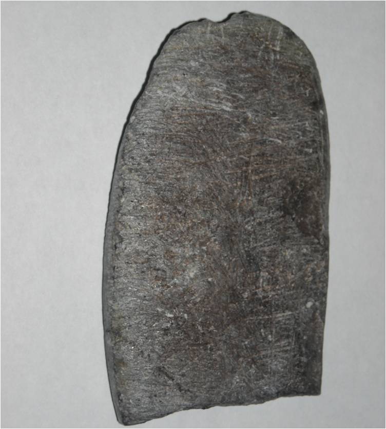 The most interesting object that I have personally found is a soapstone plaque I surface collected from Nulliak Cove. Since the beginning of my work in archaeology I have wanted to recover a piece of “art” a carving or etching etc. This piece is the closest that I have ever come; it is a very plain ground piece of stone 15cm in size with a very fine etching that can be seen on one surface. The pattern is very faint and open to interpretation, which I think makes the object more interesting. As I see it the etched lines form a series of points at different heights across the whole of the object. These could represent anything from the profile of the Nulliak’s surrounding hills to a map of points along the coast or they may be completely abstract. That there are multiple possible explanations of this small piece represents a lot of archaeology in that there are so many questions to answer and so many ways to interpret the available data.
